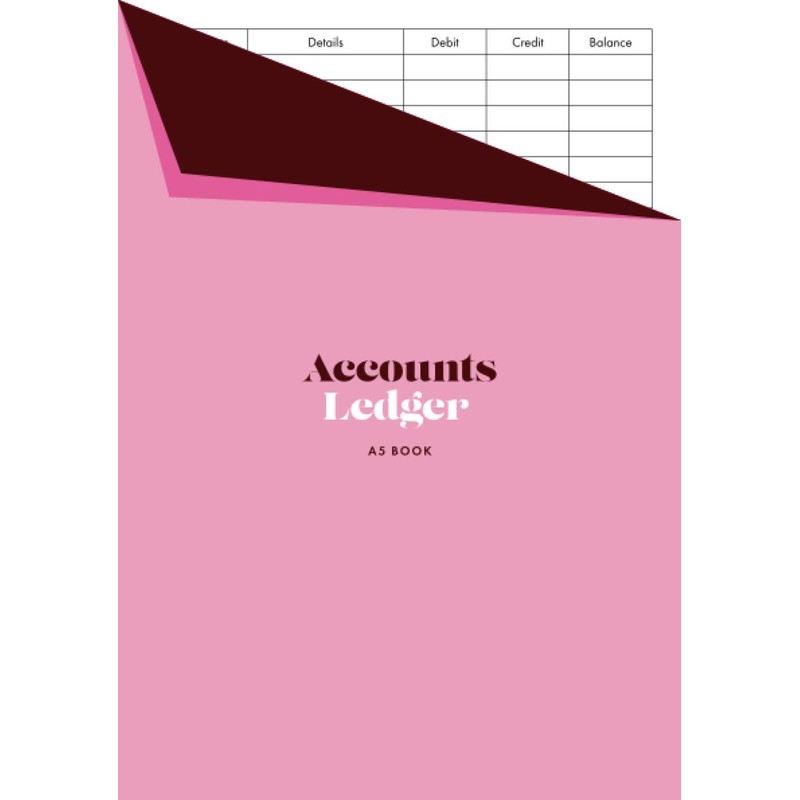 Accounts Ledger A5 Book: Pink Cover | Small Format Debit and Credit Bookkeeping Logbook for Home or Business Accounting
