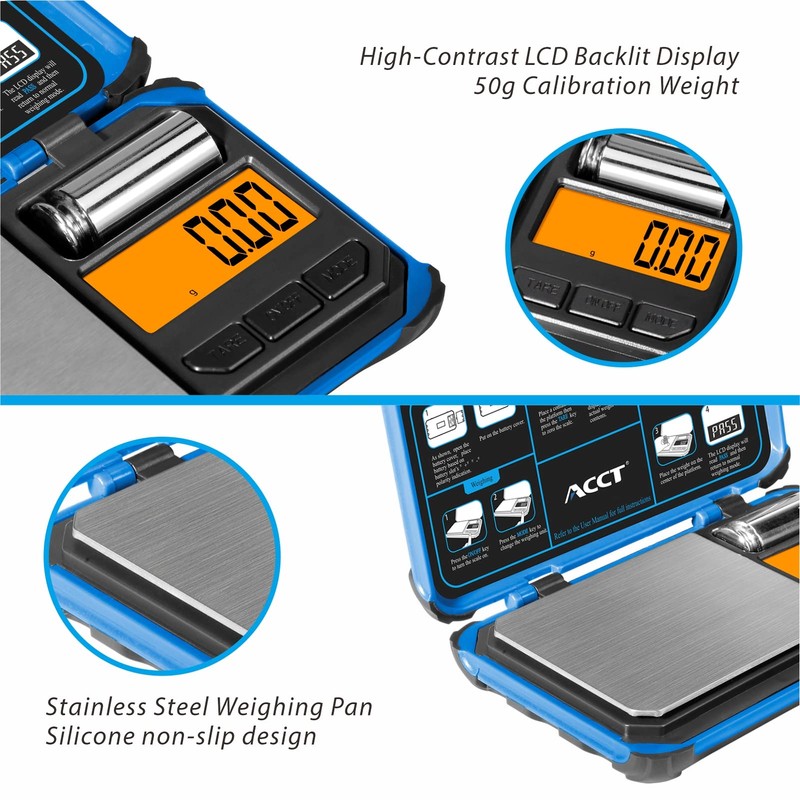 - Precise Measurement: ACCT digital pocket scale built with high precision sensor system, provides you with instant and accurate results from 0.01 g to 200 g; The error is within 0.005 grams, it is sensitive enough and comes with a 50g calibration weight;