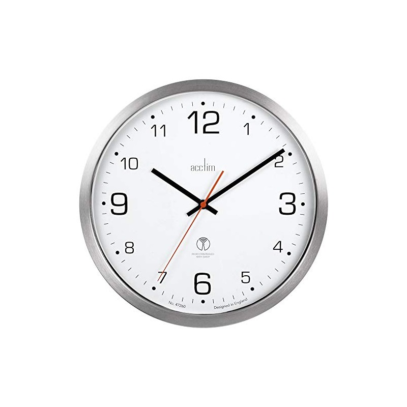 Acctim Atomik Wall Clock Non-Ticking Sweep Radio Controlled Brushed Metal Case Titanium 30cm