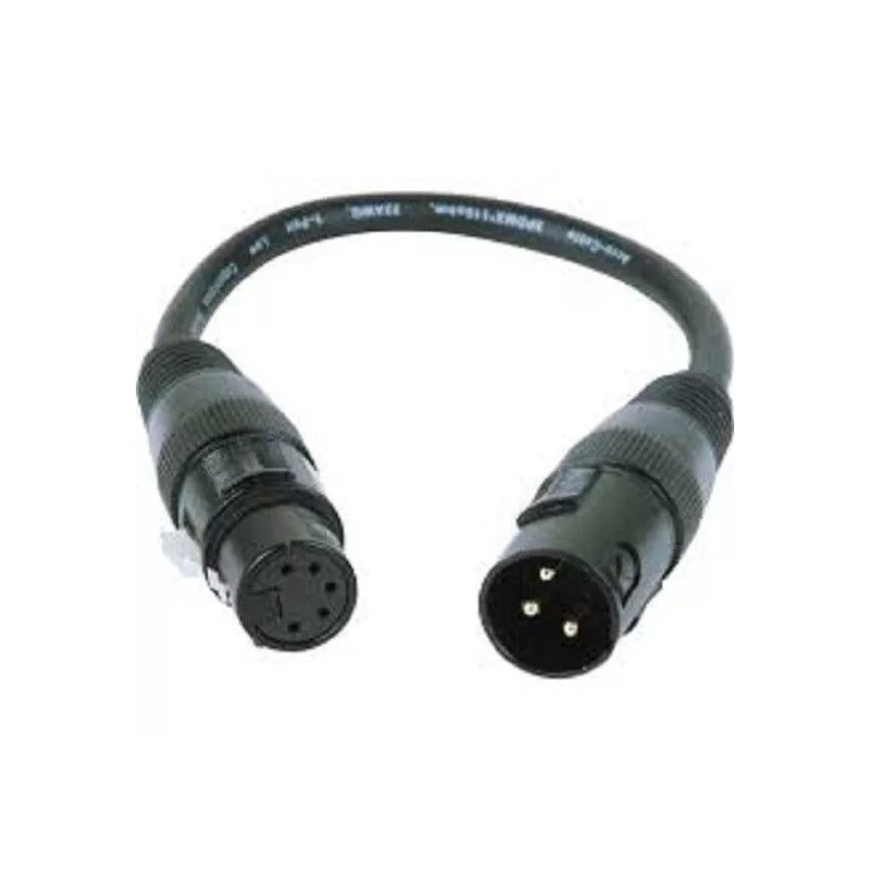 The Accu-Cable AC3PM5PFM is an adapter or "turnaround" cable that is 3-pin male XLR/DMX to 5-pin female XLR/DMX. The total overall length is 11 inches (280 mm).