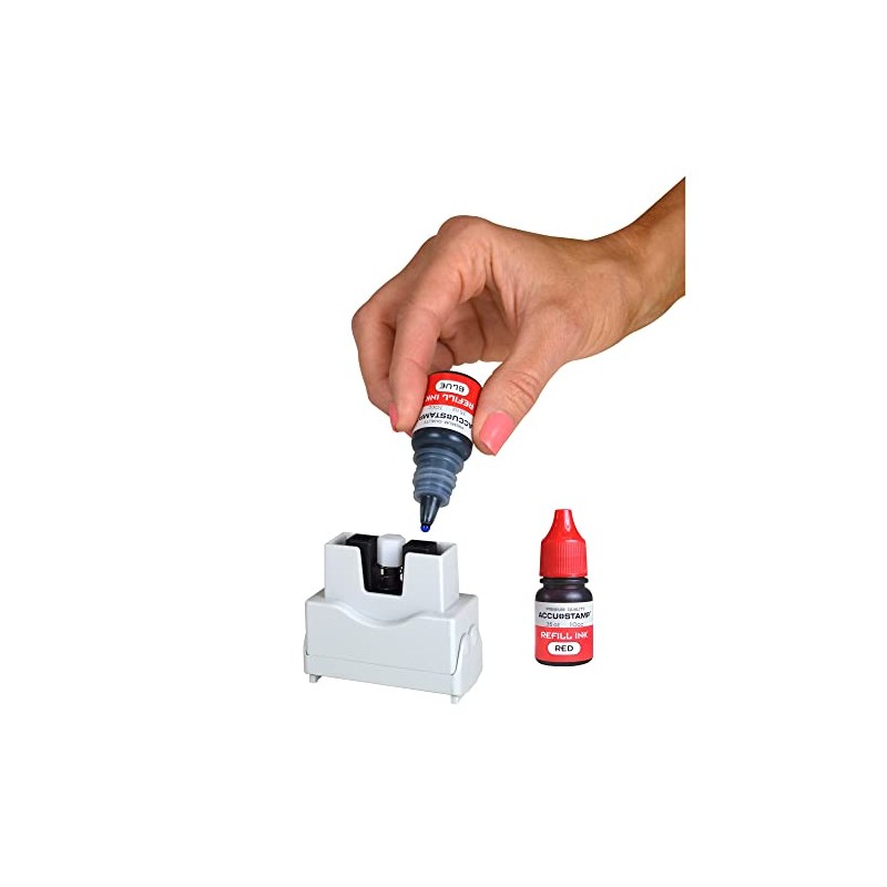 - Accu-Stamp one-color pre-inked shutter stamp features unique design for one-handed operation and has soft-touch ergonomic handle for comfort.