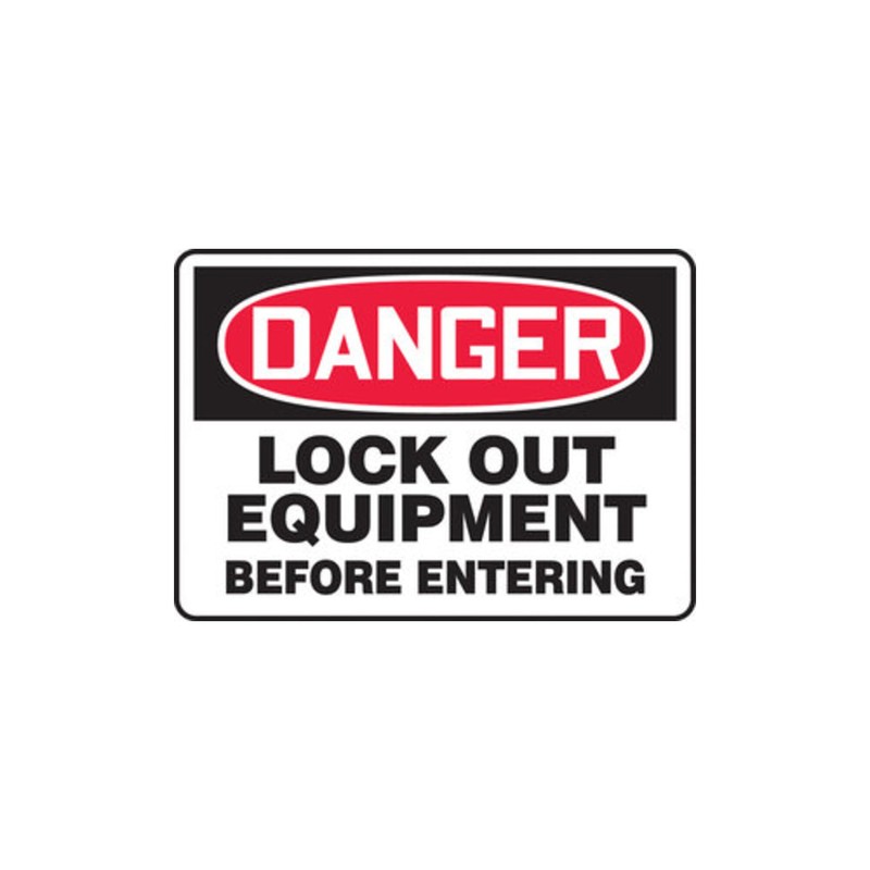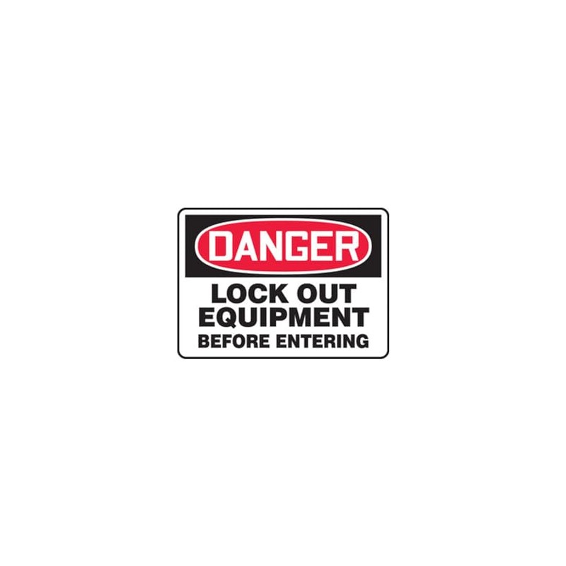 - Danger Lock Out Equipment Before Entering safety sign printed in OSHA-compliant colors