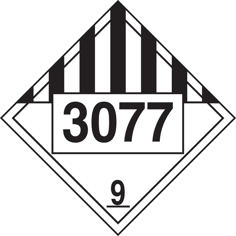 Accuform MPL793VP1 Plastic 4-Digit DOT Placard, Hazard Class 9, "3077" (Environmental Hazard-Solid), 10-3/4" Length x 10-3/4" Width x 0.055" Thickness, Black on White