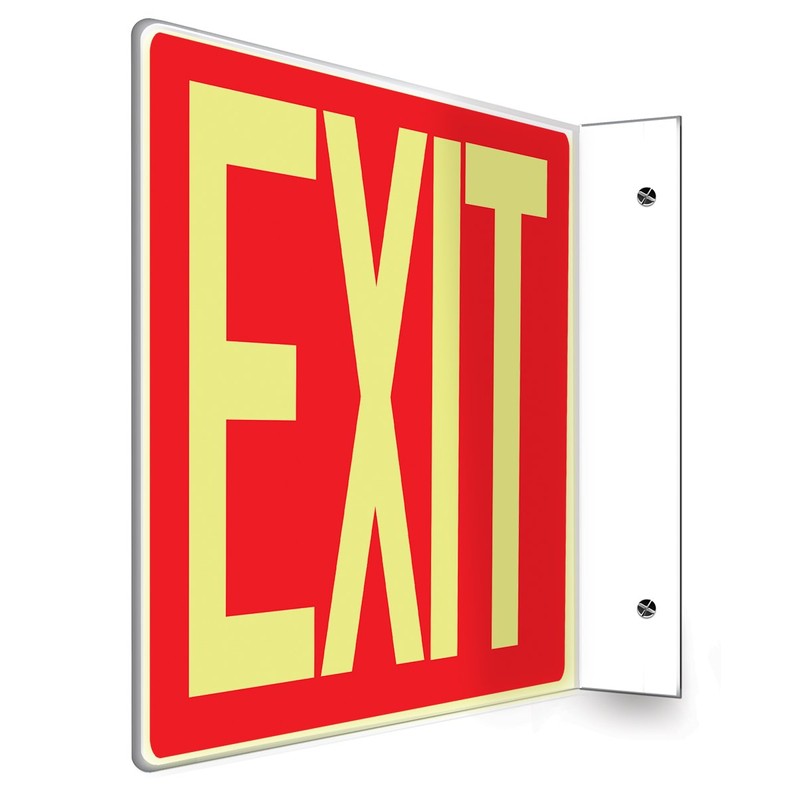 Accuform PSP227 Projection Sign 90D, "EXIT", 8" x 12" Panel, 0.10" Thick High-Impact Lumi-Glow Plastic, Pre-Drilled Mounting Holes, Glow on Red