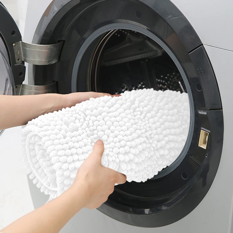 - SUPERIOR ABSORBENCY: The bold pile chenille on the top surface of the luxurious toilet mat soak up a lot of water and keep your floor dry when you're stepping out of the bath, Jacuzzi, shower, or getting ready by the sink, moisture is trapped in the bathroom rug’s deep pile, to avoid the dripping water disturbing your bathroom's serenity and tidy.
