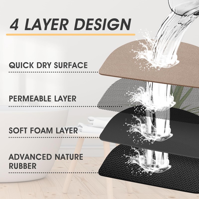 - Super Absorbent & Quick Drying: Crafted with premium hairless suede, this super absorbent bath mat rapidly soaks up spilled water, the thin bath mat keeps the bathroom floor dry at all times, providing daily bathing safety
