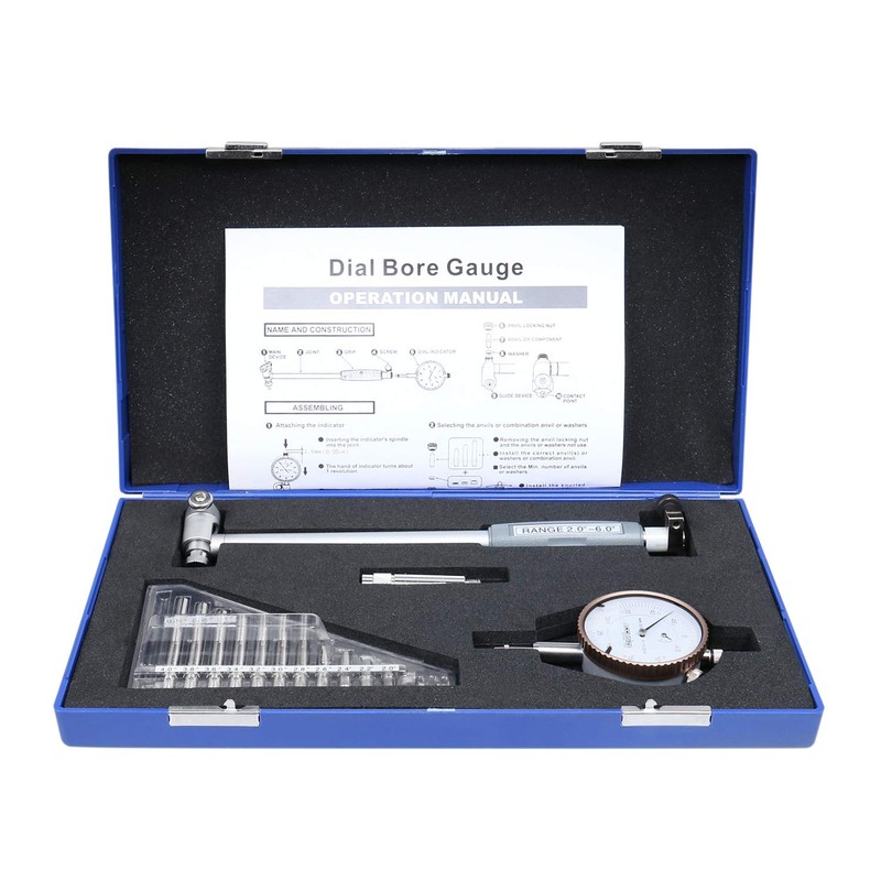 Accusize Industrial Tools 2-6'' by 0.0005'' Dial Bore Gage, Stem Length 6'', Ee20-5006