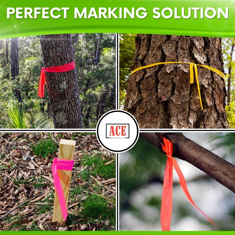 • Versatile Outdoor Tape - This tape can be used for many applications. Various uses, including marking trees, tree tape, staking tape, construction staking, trail marking tape.