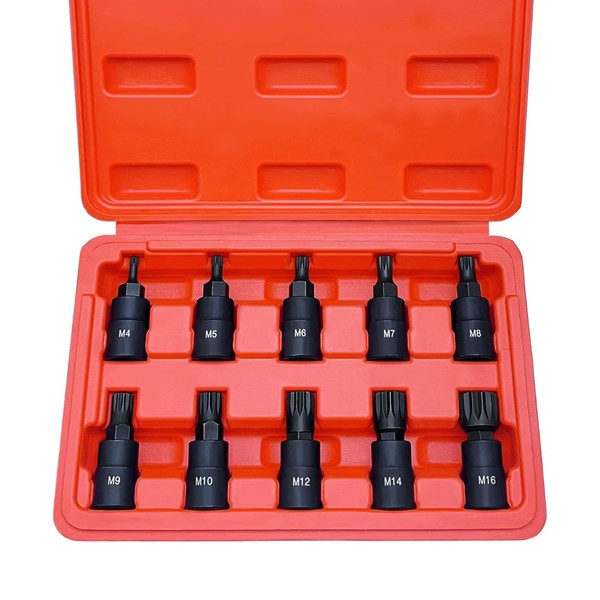 - PREMIUM 10-PIECE SET | FULL SIZE RANGE (M4-M16): Complete 3/8" drive XZN-triple square spline bit sockets (M4,M5,M6,M7,M8,M9,M10,M12,M14,M16). Fits for working on various types of vehicles.