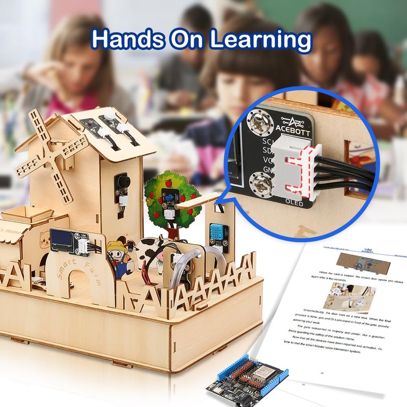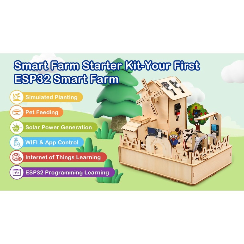- 【ESP32 Smart Farm Kit】: The smart farm programming kit is based on the ESP32 Internet of Things and integrates multiple sensors to achieve automation, wireless control and intelligent management. It can simulate planting, solar energy application, pet feeding, environmental monitoring, etc., simulating a smarter modern agricultural production management process, cultivating children's understanding and application of modern agricultural technology, and mastering relevant programming knowledge.