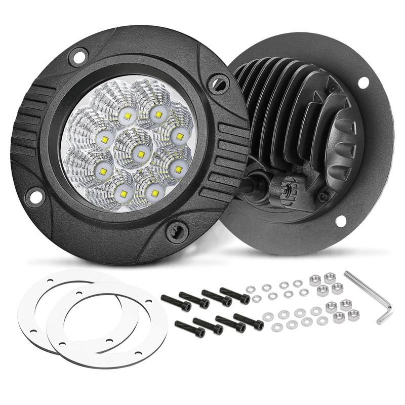 - FLOOD BEAM PATTERN - See more of what's around you! Engineered with advanced reflector optics, the flush mount LED pods produce a 120° wide flood beam. Perfectly spreads light for maximum peripheral illumination, enhancing safety during dense trails, backing up, or low-visibility conditions.