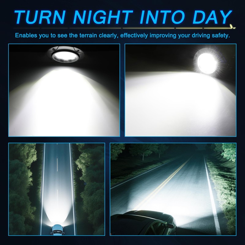 - BUILT TO LAST - Defying mud, deep snow, and punishing shock, these round offroad lights feature a heavy-duty die-cast aluminum housing and IP68 waterproof rating. Engineered with 14 oversized cooling fins, the pod lights actively prevent overheating to deliver 50,000+ hours of worry-free performance in the toughest conditions.