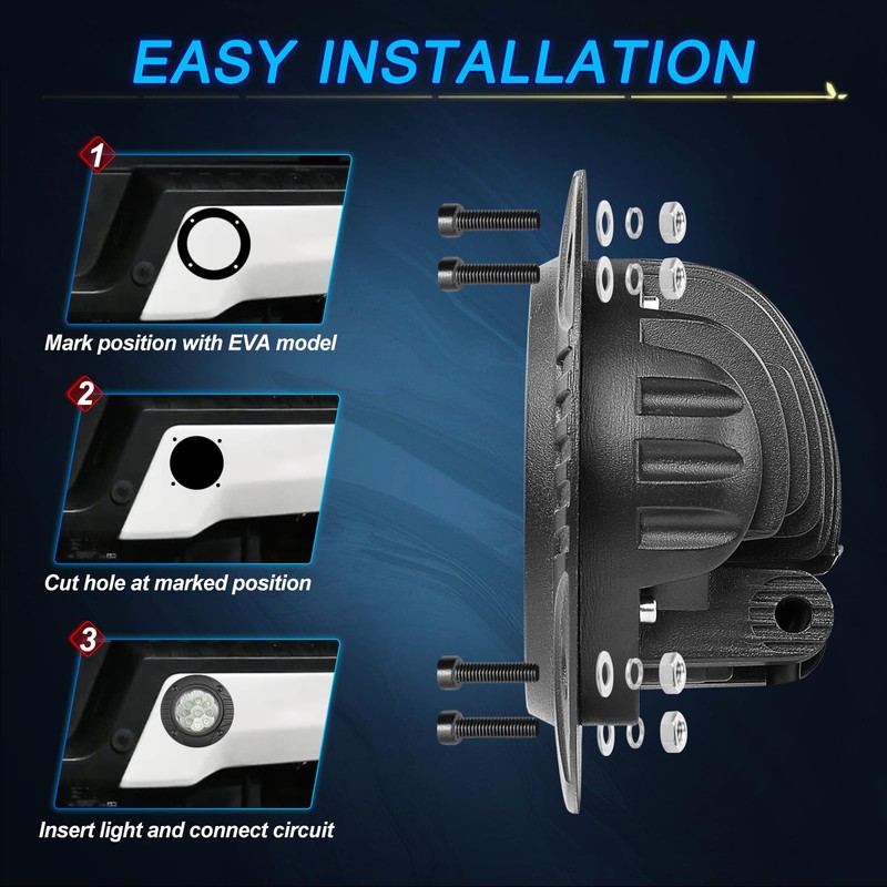 - WIDE APPLICATION - Compatible with all 12 - 30V vehicles and devices, including Truck, Pickup, SUV, UTV, ATV, Golf Cart, RV, Tractor, and more. Versatile flush-mount design installs easily on front/rear bumpers, roof racks, OEM fog light positions, or anywhere you need powerful auxiliary lighting.