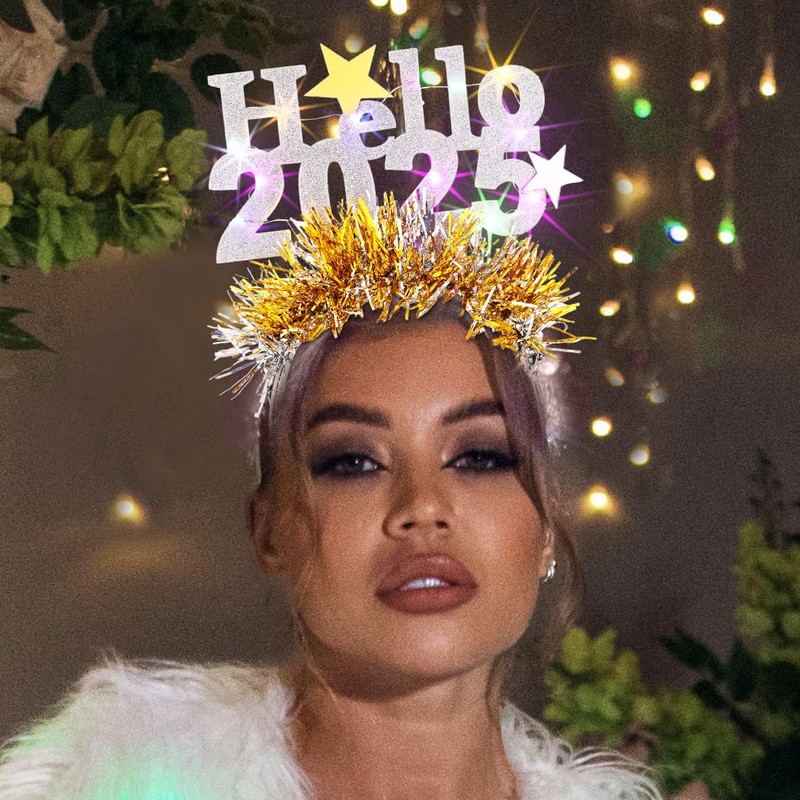 - Glow costume head wear designed from letters “Hello 2025”.When the light is turned on,it can add a stronger atmosphere to the New Year.