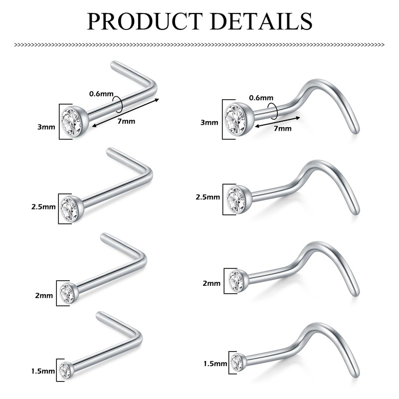 - [Total 8piece] 8piece silver nose rings adorned with clear CZ Attractive and Trendy, More Choices for Daily Wear