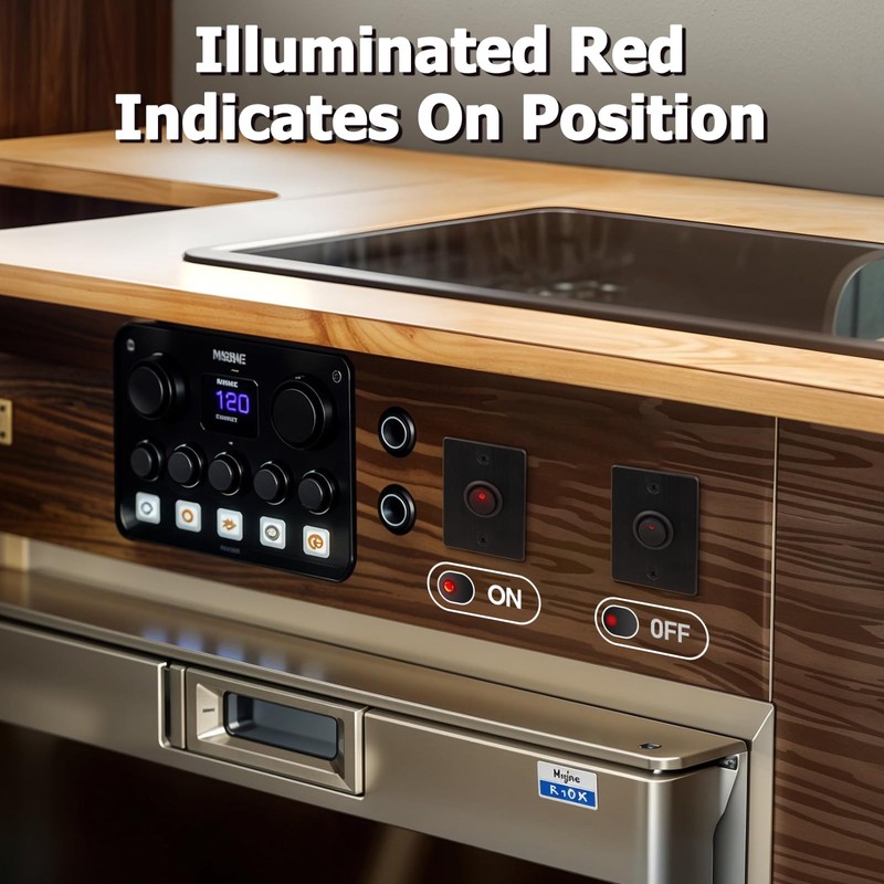- Faceplate for Versatile Applications: The aluminum panel SPST rocker switch is practical and versatile for a wide range of applications from industrial control to commercial environments, such as machinery, RV lighting control systems where durability and stability are critical. It is also suitable for power boxes or any 12-24V DIY projects