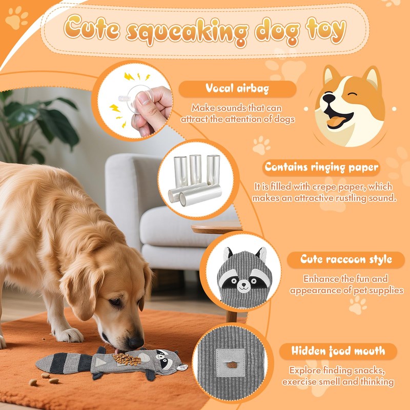 - 【Squeaky and Crinkle Paper Inside】This dog toy has a built-in squeaking toy in the head to stimulate their interest in playing; the tail is added with crinkle paper that will make a rustling sound when rubbed. The dual sound effects make the dog play more engaged, suitable for dogs of different personalities, and can entertain themselves even when they are alone at home, reducing anxiety.