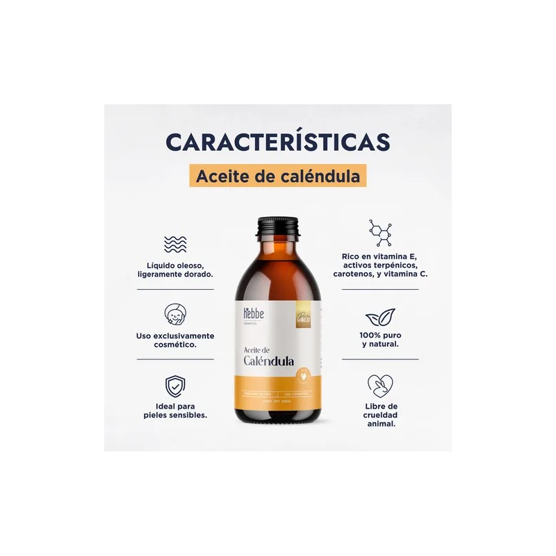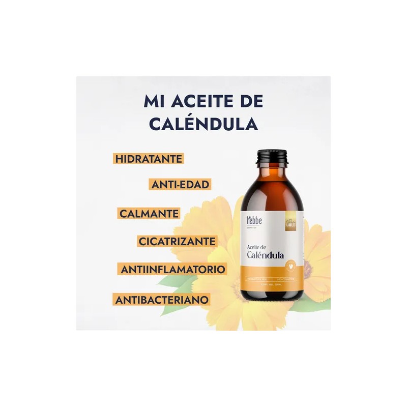 Aceite Calendula Puro Cosmético Piel Reseca Antiacne Tipo de piel Sensible Hebbe 250ml