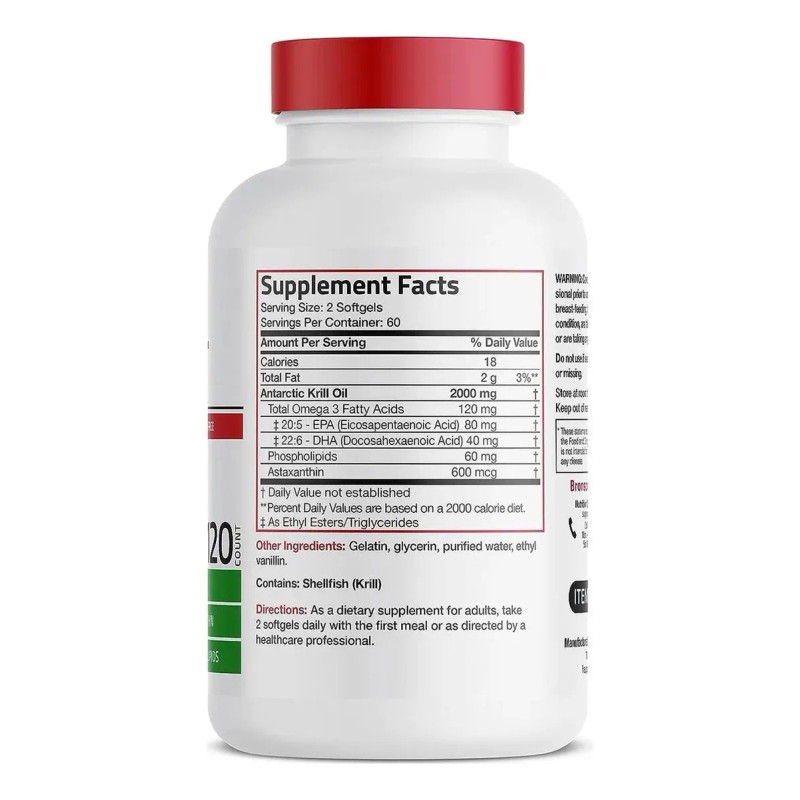 Bronson Antarctic Krill Oil 2000 mg – 120 cápsulas blandas ofrece una dosis poderosa de omega-3 (EPA y DHA), astaxantina natural y fosfolípidos que promueven múltiples beneficios de salud: