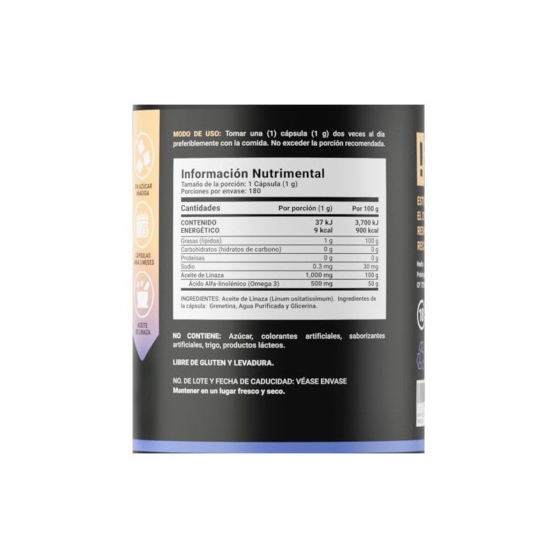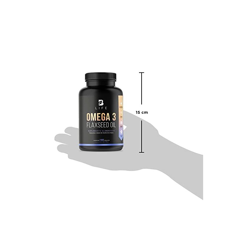 Aceite de Linaza Puro Omega 3 180 Cpsulas. Ingredientes naturales cido Alfa Linolnico. Omega 3 Flaxseed Oil B Life.