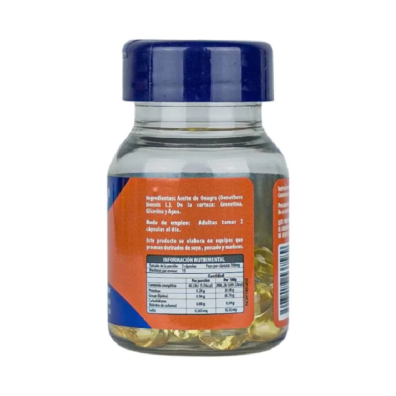 - Aceite de onagra en cada cápsula con dosis precisa de 700 mg.
