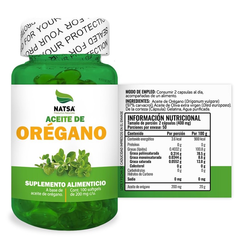 Aceite de Orégano 100 cápsulas, calidad Premium