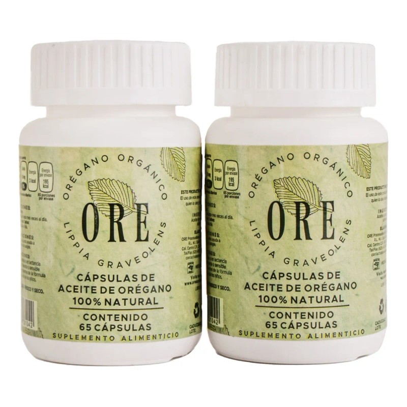 Aceite de Orégano ORE | Kit 2 Frascos con 65 Cápsulas c/u | Suplemento Natural para Defensas, Inmunidad y Salud Digestiva 🌿💊🛡️