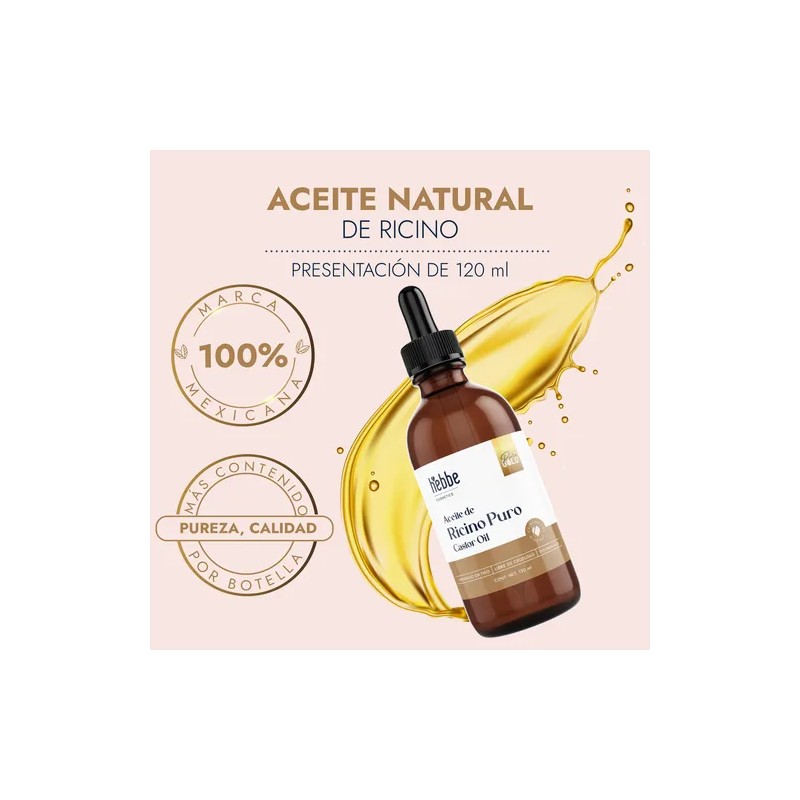 Aceite de Ricino Castor Oil, 100% Puro, Orgánico y Prensado en frío de HEBBE COSMETICS