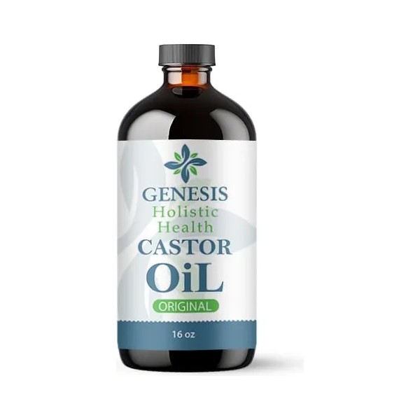 Aceite de ricino orgánico Genesis, 100% puro y certificado por la USDA. Este aceite natural es ideal para fortalecer y nutrir el cabello, las cejas y las pestañas, así como para hidratar y suavizar la piel. Es un producto versátil para el cuidado personal