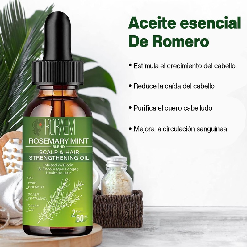 - 🌿【APLICACIÓN】El aceite de romero y menta es adecuado para la mayoría de los tipos de cabello y también se puede utilizar en las cejas, Aceite de Romero para el Cabello las pestañas y la barba para proteger la piel del cabello de crecimiento rápido.
