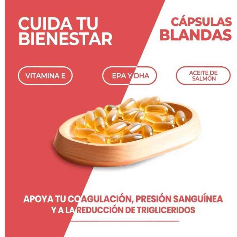 ¡Potencia tu bienestar con el Aceite de Salmón Omega 3 de Nuboost! 🚀 Este generoso frasco de 180 cápsulas de 1000mg es tu aliado perfecto para una salud óptima y duradera. Cada cápsula está repleta de los esenciales EPA y DHA, ¡los superhéroes para tu corazón y tu mente! 🦸♂️ Imagina que están trabajando incansablemente para proteger tu corazón ❤️, manteniendo su ritmo fuerte y constante. Pero no solo eso, son el combustible definitivo para tu cerebro 🧠, promoviendo una memoria más nítida, una concentración inquebrantable y esa claridad mental que te impulsa a alcanzar tus metas 🎯. Y lo mejor de todo es que son sin sabor 🚫👅, para que puedas disfrutarlos sin molestias. Además, brindan soporte para una visión saludable 👀 y ayudan a reducir la inflamación en todo tu cuerpo, brindándote una sensación de comodidad y equilibrio. ¡Un impulso diario para sentirte más vital, energético y listo para enfrentar el día! ✨