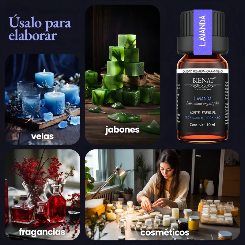 Descubre la magia de la lavanda con este aceite esencial 100% puro y natural de Bienat Aromaterapia®, ideal para relajarte, cuidar tu piel y elevar tu bienestar día a día.