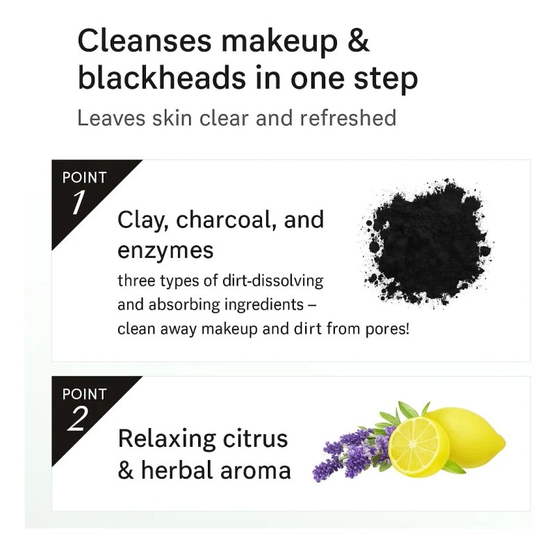 Completamente limpio con arcilla, carbón y enzimas: este aceite limpiador "PORE CLAY OIL BLACK" es adecuado para todo tipo de piel y deja la piel fresca sin ninguna tensión después de la limpieza. La arcilla, el carbón vegetal y las enzimas absorben y limpian a fondo los puntos negros obstinados que se acumulan en los poros.; El poder de la emulsión natural de arcilla y aceite te da una piel clara: este aceite limpiador contiene una emulsión de arcilla y aceite que combina bien con el maquillaje, eliminando incluso el maquillaje obstinado sin frotar, mientras que también absorbe y elimina el sebo y la opacidad, lo que permite que se lave rápidamente.; Limpiado profundamente para una piel suave: después de limpiar a fondo los poros, deja la piel suave y el aroma refrescante de cítricos frescos y hierbas te dejará sintiéndote relajado.; Reduce la carga de la piel: consideramos ingredientes que son seguros para poner en la piel.