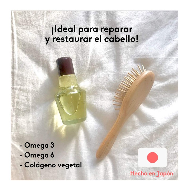 - Es el “aceite milagroso” de Japón, ya que es rico en colágeno vegetal, Omega 3, 6, vitaminas y ácidos grasos esenciales para la reparación y regeneración de la piel.