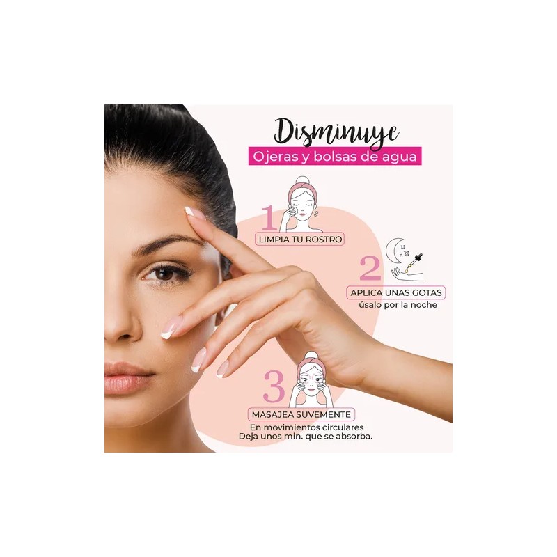 Aplica unas gotas del serum sobre el rostro limpio y seco, masajeando suavemente hasta su completa absorción. Úsalo diariamente para obtener mejores resultados.