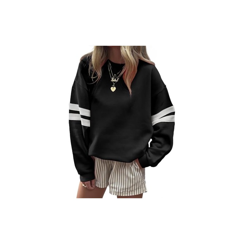 Acelitt Women's Casual Winter Fashion 2025 Loose Crewneck Long Sleeve Comfy Color Block Sweatshirts Pullover Tops Black Large