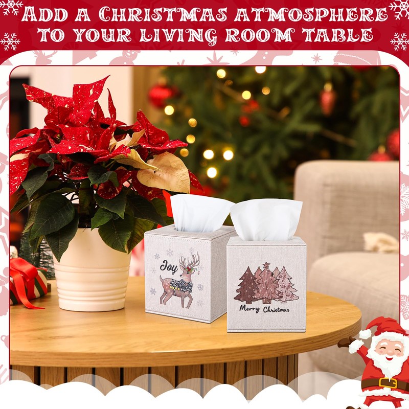 • Product Included: the set contains 2 christmas tissue box cover, can be placed in the living room, bedroom or dining table to easily create a Christmas atmosphere; They can also be given as gifts to relatives, friends or colleagues to convey Christmas joy