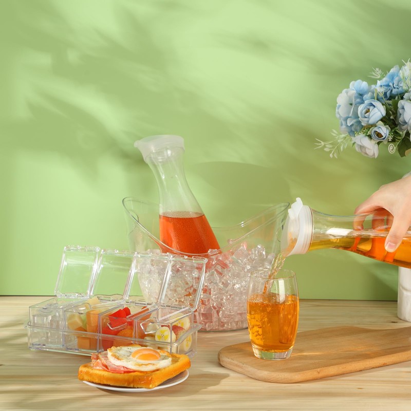 - Applicable Size: this condiment server organizer measures 10 x 3.5 x 3 inches and comes with 4 removable lidded compartments for easy serving and storage of ingredients; The champagne ice bucket has a capacity of 4 liters and measures 10.6 x 7.7 inches, and the depth and width of the ice bucket are sufficient to accommodate the required drinks
