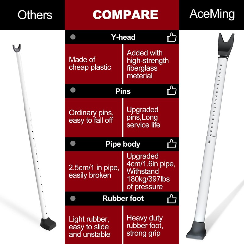 - [Versatile and Enhanced Design] The lock bar is equipped with enhanced high-strength alloy connections to extend the service life. It also features thickened 1.57inch pipe diameter design, high-quality material upgrades and plastic components made of high-strength fiberglass material making it stable and sturdy. Since the security bar on an AceMining door stopper can endure 400 pounds of force, an invader would have to be as strong as a heavyweight boxer to open the door.