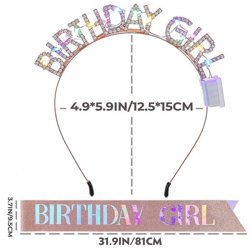 - Birthday girl headbands and sash made of quality alloy,sparkle rhinestones headbands and glitter birthday sash making more dazzling