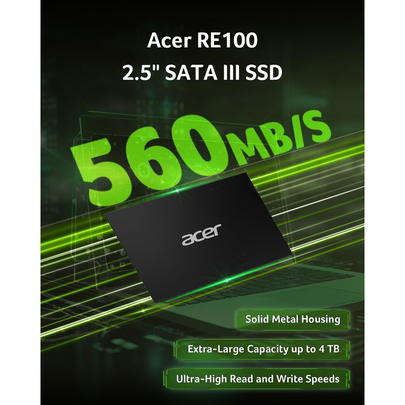 acer RE100 2.5 Inch SATA III SSD 512GB Internal Solid State Hard Drive with SLC Cache, Read Speeds Up to 560MB/s - BL.9BWWA.108