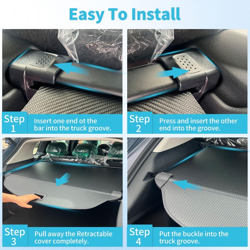 - 【Convenient Operation】: Featuring a retractable design, the cargo cover allows for flexible adjustment of the shading area based on the size of items in the trunk, effortlessly achieving space division and privacy protection.
