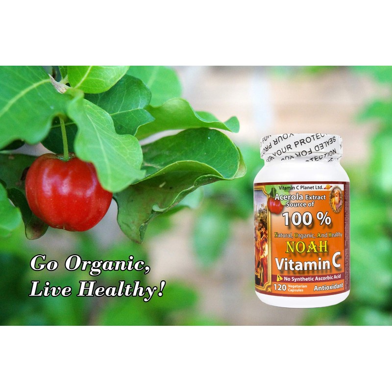 What is NOAH Vitamin C? NOAH (Natural, Organic, and Healthy) Vitamin C is a High-quality and premium Vitamin C supplement. It is a source of 100% natural and organic Vitamin C for you. There is not any added synthetic Vitamin C in the NOAH Vitamin C. Each vegetarian capsule provides you with 300% of the daily value (DV) of Vitamin C. It means that the Vitamin C content of each capsule is equal to 340 grams of Oranges! (One NOAH Vitamin C capsule = 2 medium-sized oranges). NOAH Vitamin C has Acerola cherry extract as the source of Vitamin C. Each container has 120 capsules and the serving size for adults is 1 capsule a day. In the other words, each container is for 120 days (4 months). Pregnant and breast-feeding women should consult with physician or pharmacist before taking this supplement. Keep out of reach of children. NOAH Vitamin C is manufactured by "Vitamin C Planet Ltd.", the manufacturer of the high-quality and premium natural and organic Vitamin C products. ***** Why Should You Take Vitamin C? Vitamin C is an essential compound in your body. Vitamin C is needed in biosynthesis of Collagen, which is an important structural protein in Muscles, Skin, Gums, Cartilages, Bones, Teeth, etc. Humans can not bio-synthesise Vitamin C by themselves, and so you should take Vitamin C from food or supplements. NOAH Vitamin C is one of the best substitutes of the food Vitamin C because it is 100% Natural and Organic Vitamin C and there is not any synthetic Vitamin C in its formula. ***** Why Should You Take Vitamin C Daily? Vitamin C could not be stores in your body and the excess amounts would be excreted in urine, so you should take Vitamin C daily. One NOAH Vitamin C capsule a day can provide your body with enough amounts of organic Vitamin C. ***** Why NOAH Vitamin C? Your Health is Important / It provides you with a high-quality 100% Natural and Organic Vitamin C / One capsule a day / 120 servings per container.
