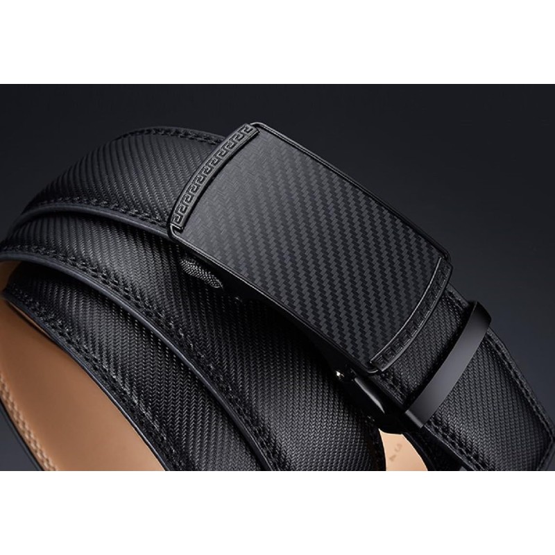 Acewin Men's Leather Belt, Adjustable Automatic Buckle Mens Belt, 1 3/8" Width (35mm)(01-Black, 105 CM)