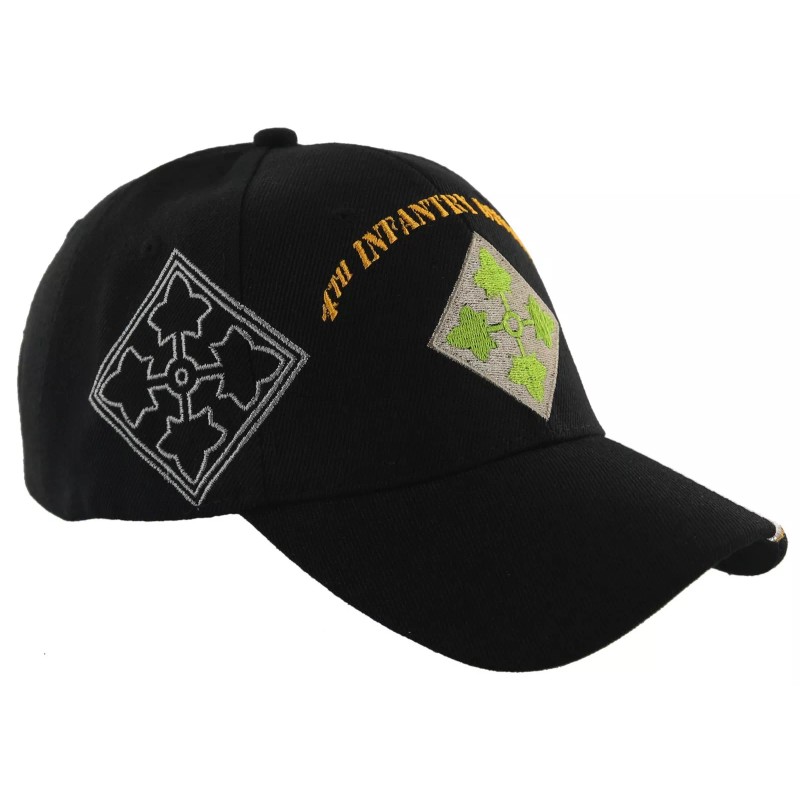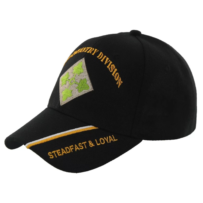 NEW! US ARMY 4TH INFANTRY DIVISION STEADFAST & LOYAL BALL CAP HAT BLACK