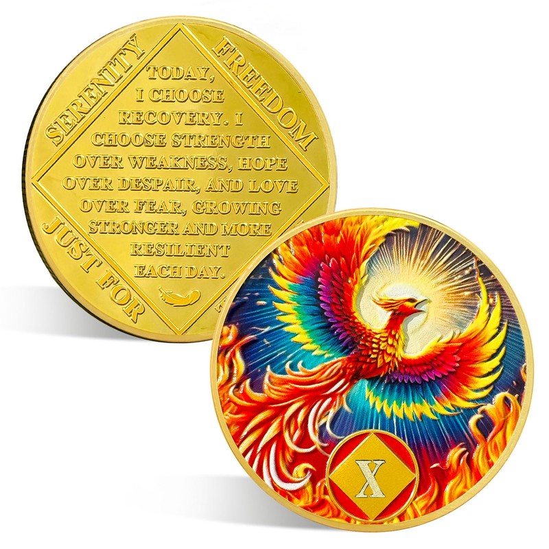 - Rebirth and Transformation: NA Phoenix Sobriety Medallion symbolizes the phoenix's rebirth, representing emerging from hardship with renewed strength and hope. A reminder to maintain inner peace and power when facing life's challenges, encouraging individuals to courageously surpass their limits and live their authentic selves. NA medallion provides strong support for the journey of sober, helping holder grow continuously and move toward a brighter future