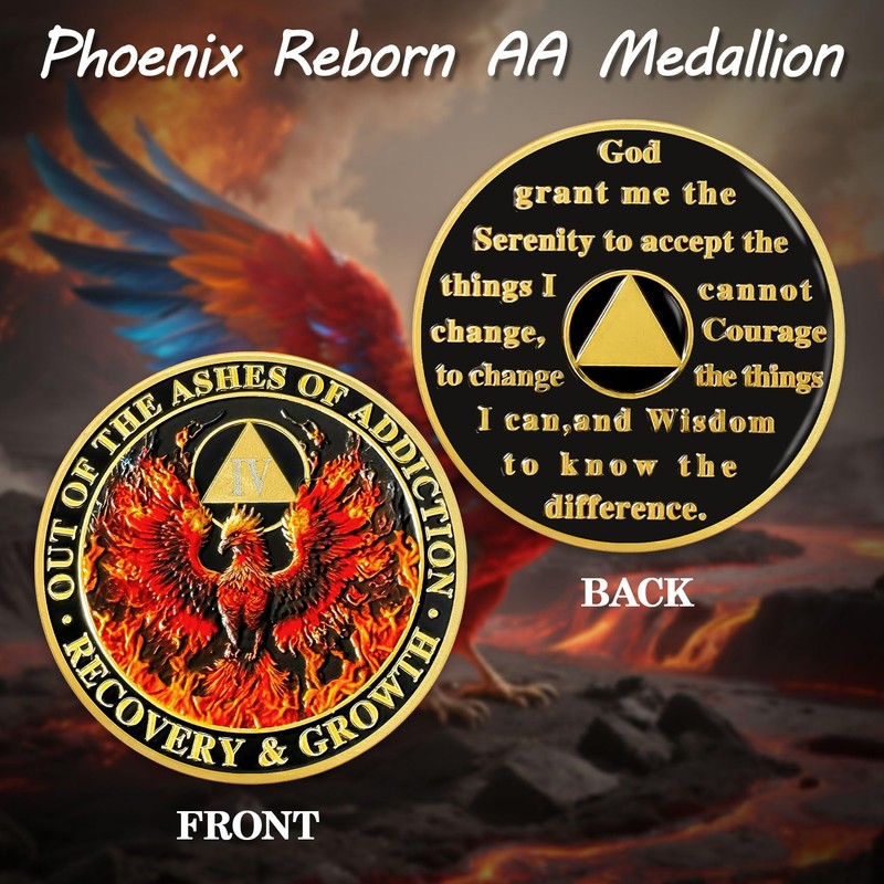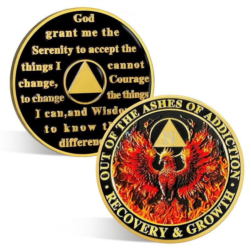 - 4-Year Sobriety Celebration: Phoenix AA coin and token provide a powerful reminder and support for you or your loved ones on the journey to sobriety, representing that recovery is an ongoing process, with each day being a new beginning of growth and hope. A great recovery chip that can inspire those in recovery, encouraging them to face challenges bravely, stay optimistic, and persist on the path to a brighter and healthier life