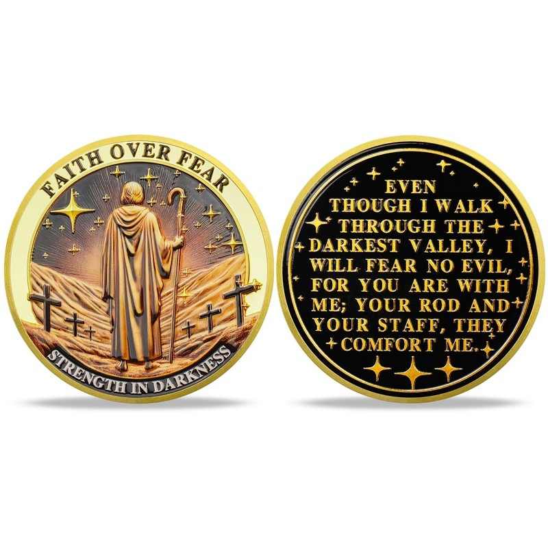 ACGZQY Faith in Darkness Coin - Christian Challenge Coin - Jesus Psalm 23:4 Inspirational Religious Token Spiritual Growth Motivational Christian Gift