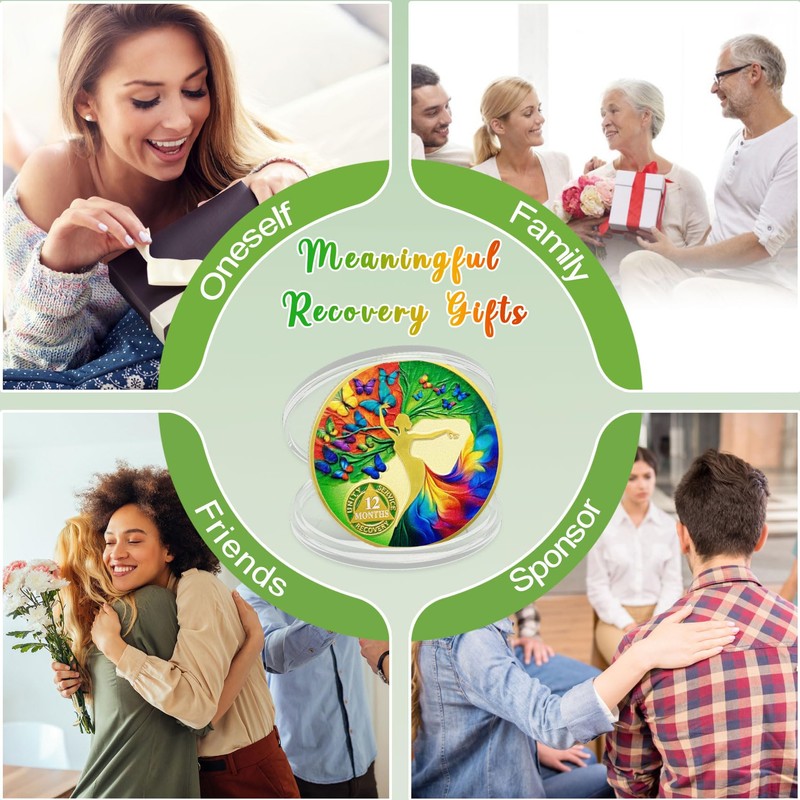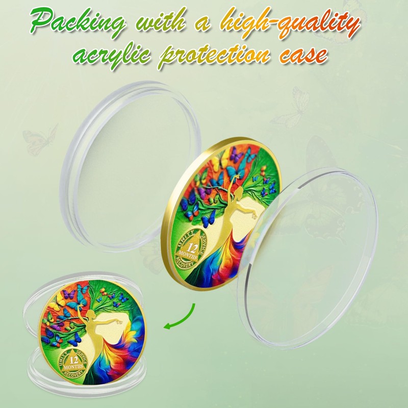 - Celebration of 12 Month Recovery: The sobriety medallion features a dancing woman transformed into a tree of life, surrounded by vibrant butterflies, symbolizing the freedom and rebirth found in recovery. It represents hope, transformation, and inner strength, celebrating the holder’s sobriety while encouraging them to keep moving forward on their recovery journey. Even through ups and downs, it serves as a reminder to find new hope and strength in every change