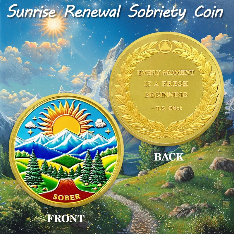 - INSPIRATIONAL MESSAGE Our sobriety coin conveys a strong belief in sobriety and a sober life. The nature scene on the front symbolises new life, hope and the good life that comes with sobriety. The quote on the back reminds you that every moment is a new beginning and that regardless of the past, it is possible to start anew from now on